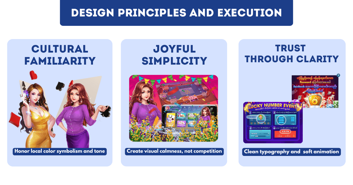 To create something that resonated with Burmese players, I needed to understand what joy, trust, and beauty looked like in local design culture.