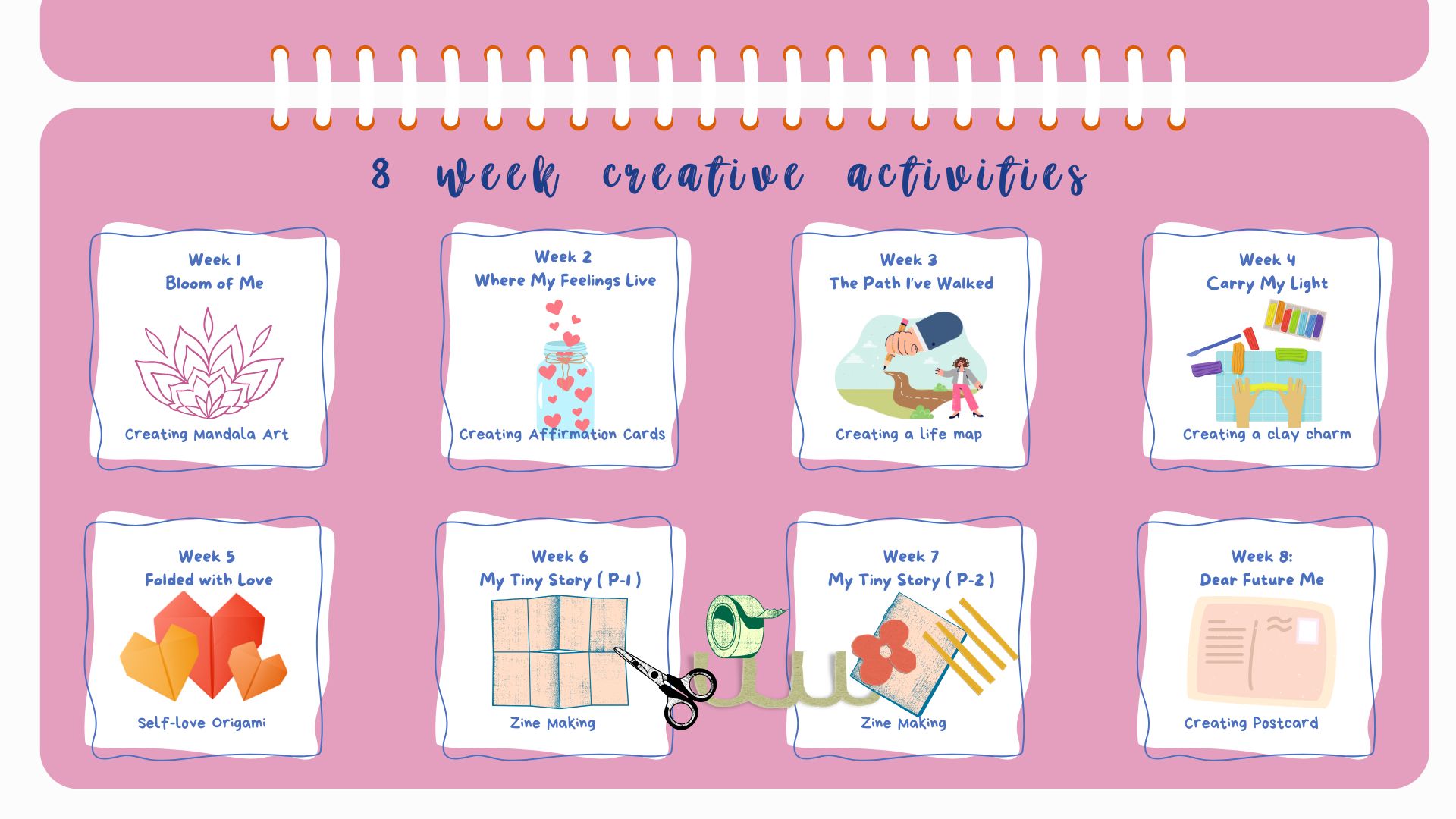 With the problem space defined, I transitioned into ideation and co-creation, designing the emotional and creative flow of the 8-week program.